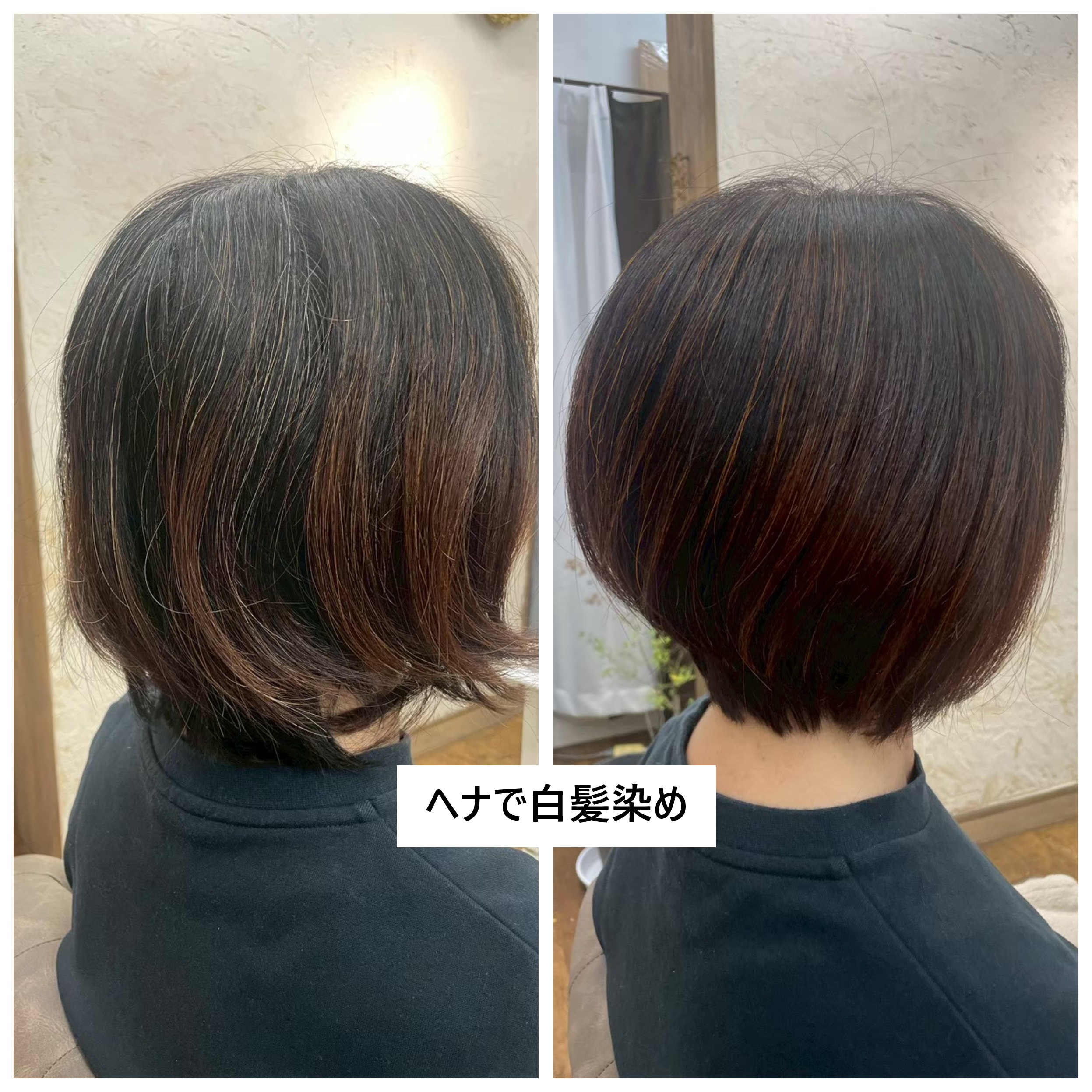 全体に白髪率が低めなので、ヘナだけで自然な仕上がりになります。